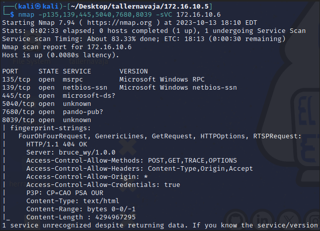 Una vez hemos completado la enumeración rápida de los servicios disponibles, vamos a enumerar de forma detallada que se está ejecutando tras cada puerto abierto.