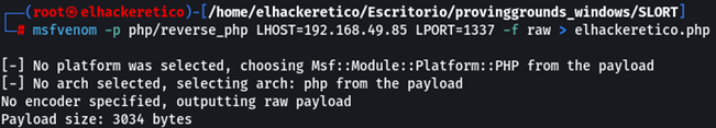 El siguiente paso será generar una Shell reversa en PHP con msfvenom.