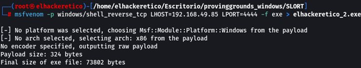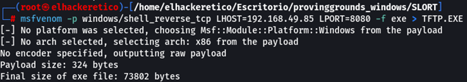La Shell generada anteriormente es inestable y se desconecta pasado un periodo de tiempo. Vamos a crear otra carga útil que enviaremos al objetivo utilizando certutil. Comenzamos generando la carga útil.