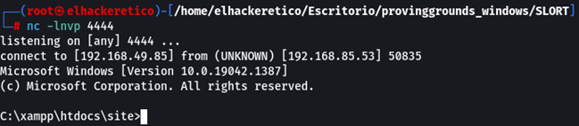 Y ejecutamos este archivo al mismo tiempo que tenemos en escucha un oyente nc en el puerto 4444.
