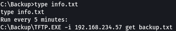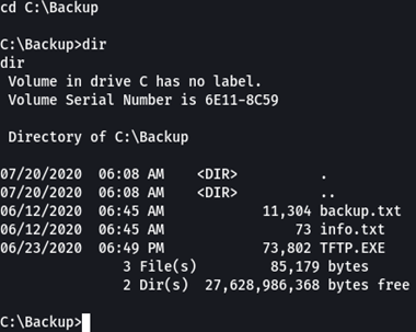 En el directorio raíz hay un C:\Backup que puede ser interesante. Vamos a ver su contenido.