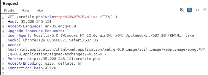 Exploramos funcionalidades específicas del sitio, como formularios de perfil y carga de imágenes. Estas pruebas revelaron una posible vulnerabilidad de Server-Side Request Forgery (SSRF), que explota la funcionalidad de cargar imágenes a través de URLs.