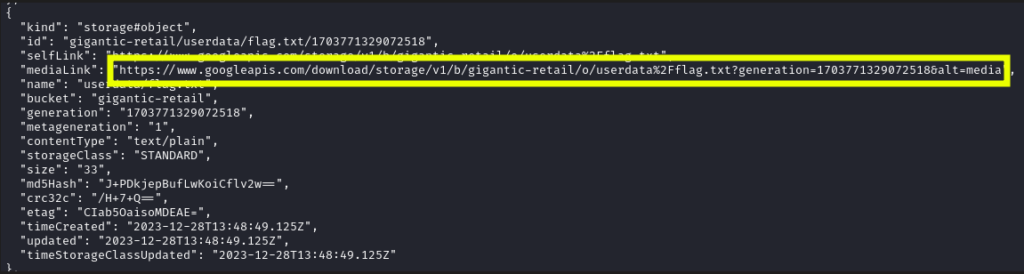 Con el token obtenido, accedemos al bucket de almacenamiento público asociado al sitio. Esto nos permitió listar todos los objetos almacenados, incluido un archivo de flag del laboratorio, completando así la misión.