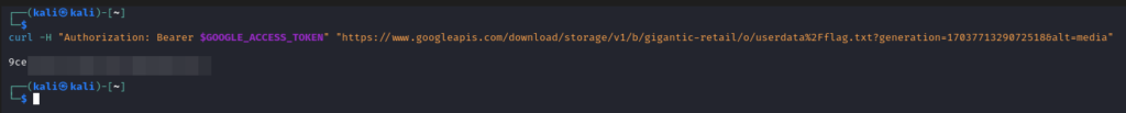 curl -H "Authorization: Bearer $GOOGLE_ACCESS_TOKEN" "https://www.googleapis.com/storage/v1/b/gigantic-retail/o"