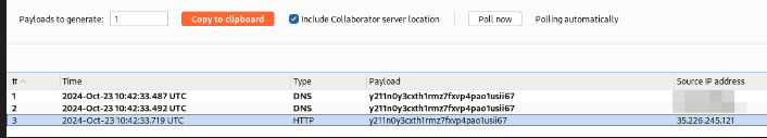 Utilizamos para ello una URL de Burp Collaborator.