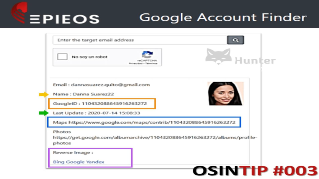Y encontramos esta información. La cadena numérica anterior es un Google ID. Además, tenemos un nombre, un email, perfiles de imágenes, maps… Tenemos mucha información que nos puede ser de utilidad.