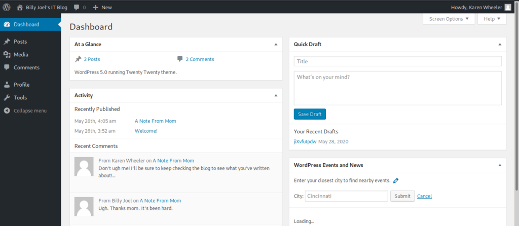 Una vez dentro, identifiquemos al usuario con el que ingresamos.