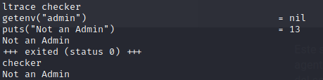 Hay un SUID muy interesante, echémosle un vistazo a /usr/sbin/checker. Para aplicar ingeniería inversa a esto, utilicé un comando llamado ltrace.
