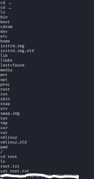Y volviendo al directorio /, encontramos la carpeta root, que contiene el archivo root.txt