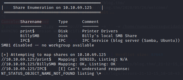 La fase de enumeración no ha finalizado, aunque todavía tenemos recursos SMB compartidos de para consultar para obtener más información.