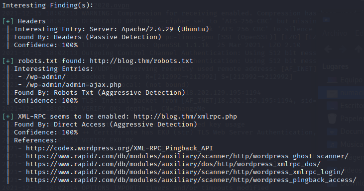 Un simple wpscan muestra que tenemos xml-rpc habilitado en el sitio web, siempre que este archivo esté habilitado en cualquier sitio web de wordpress, el sitio web se vuelve vulnerable a un ataque de fuerza bruta.