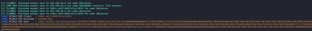 Otro ataque que podemos realizar es el envenenamiento de red con el que vamos a tratar de obtener hashes NTLM de usuarios del sistema.