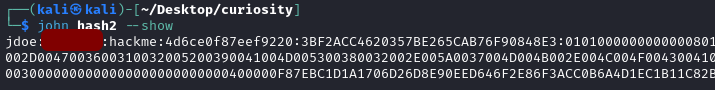 Obtenemos el acceso a la máquina Curiosity y la flag de usuario con bajos privilegios.