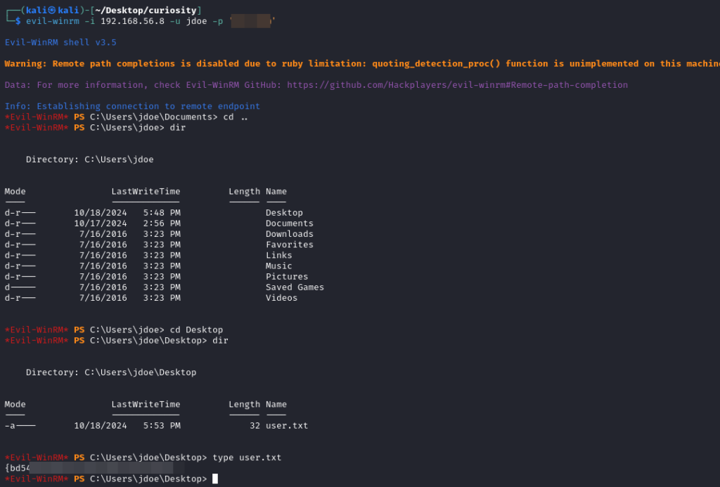 evil-winrm -i 192.168.56.8 -u jdoe -p '...'