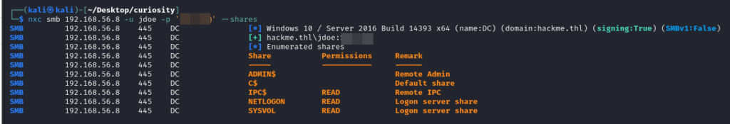 nxc smb 192.168.56.8 -u jdoe -p '...' --shares