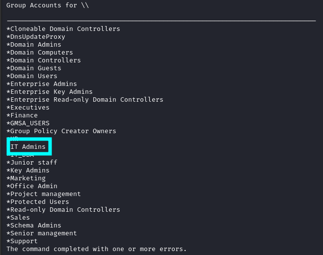 Haciendo un poco de enumeración para el usuario jdoe, vemos que pertenece al grupo IT Admins