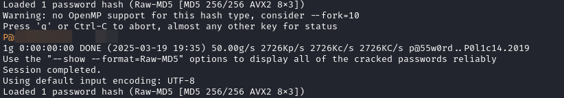 Copiamos el hash localizado y vamos a tratar de descifrarlo con john.