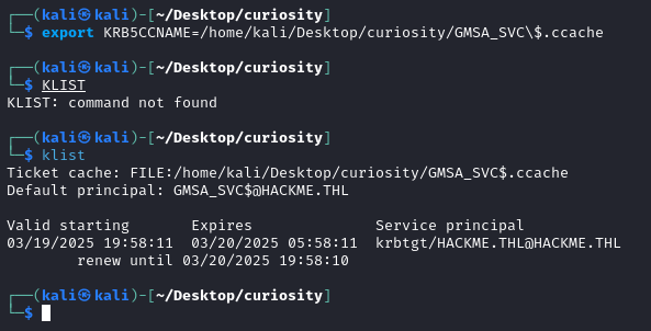 export KRB5CCNAME=/home/kali/Desktop/curiosity/GMSA_SVC\$.ccache
