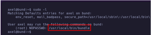 axel@bund:~$ sudo -u root /usr/local/bin/bundle help