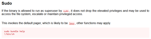 Para la escalada de privilegios abusaremos de permisos SUDO en el binario Bundle