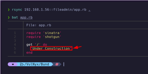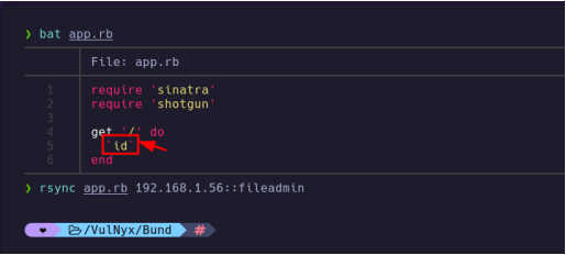 Modifico app.rb para intentar inyectar un comando y lo subo para sobrescribir el existente.