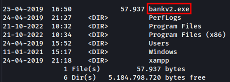 Encontramos en el sistema de archivos un binario en la raíz de la unidad llamado bankv2.exe