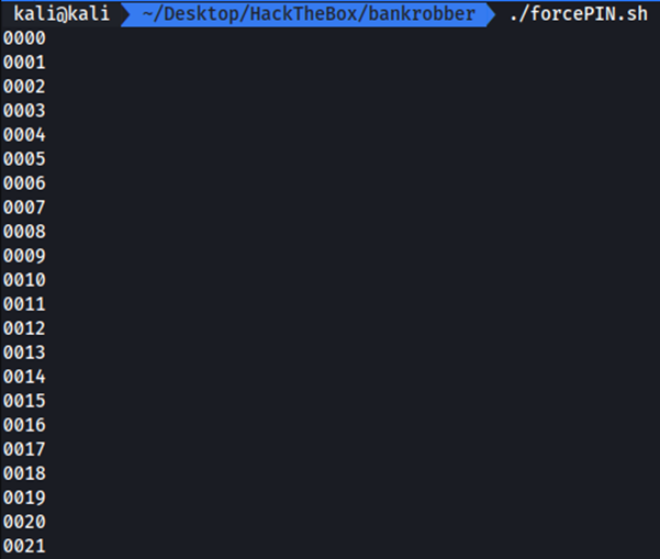 Vamos a crear un script que realice una fuerza bruta que nos determine el valor del PIN correcto.
