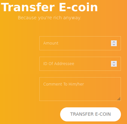 A continuación, escriba la siguiente línea de código en el campo de comentarios y haga clic en «TRANSFERIR E-COIN».