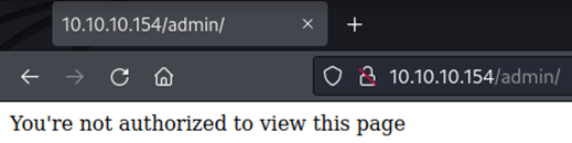 Existen dos directorios que pueden ser interesantes, /admin y /user. El directorio /user es donde el usuario inicia sesión en el sitio Web. Al visitar el directorio /admin, nos devuelve el siguiente mensaje.