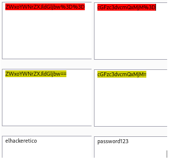 Como vimos anteriormente, las cookies contenían el username y password cifrados en base64 y la id de usuario. Vamos a descifrar username y password.