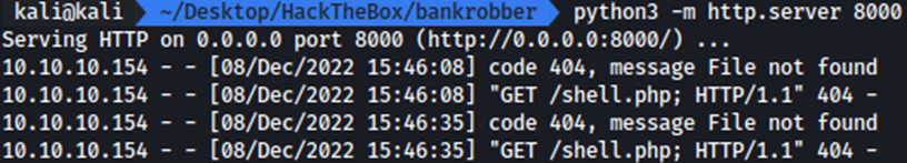 BankRobber es un CTF de dificultad insane que podemos encontrar en la plataforma de HTB. Encontraré una vulnerabilidad XSS que puedo usar para filtrar la cookie del usuario administrador, dándome acceso a la sección de administración del sitio. A partir de ahí, usaré una inyección SQL para extraer el código fuente de una de las páginas de PHP que muestra que puede proporcionar ejecución de código, pero que solo se puede ejecutar desde localhost. Volveremos a utilizar la misma vulnerabilidad XSS para que el administrador envíe esa solicitud de BankRobber, devolviendo un Shell. Para acceder a SYSTEM, encontraré un binario ejecutándose como SYSTEM y escuchando solo en localhost. Haremos fuerza bruta a un pin de 4 dígitos y luego descubriré un desbordamiento de búfer simple que me permite sobrescribir una cadena que es la ruta al binario que se ejecuta posteriormente.