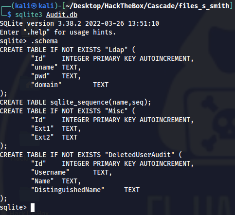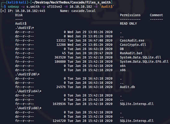 Dentro del recurso compartido Audit$ encontramos una base de datos Audit y un archivo ejecutable CascAudit.exe.