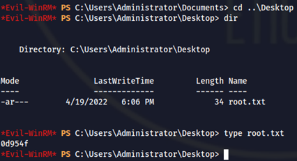 Accedemos a través de evil-winrm, ya podremos buscar la flag root.