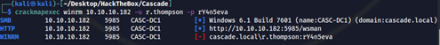 Vamos a comprobar si con esta contraseña y el usuario r.thompson podemos conectarnos a través de WinRM.