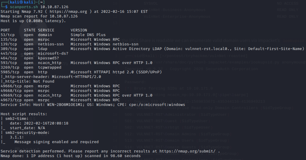 Del escaneo con scanports, obtenemos que le nombre de dominio es vulnnet-rst.local.