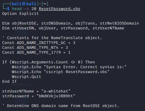 Encontramos credenciales codificadas en un script básico visual a-whitehat:bNdKVkjv3RR9ht
