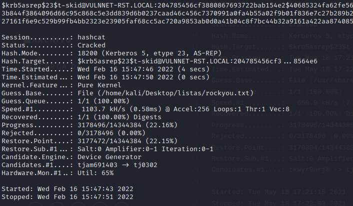 Descifrando el hash KRB5 AS-REP usando hashcat