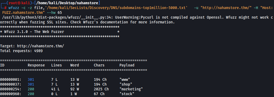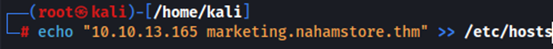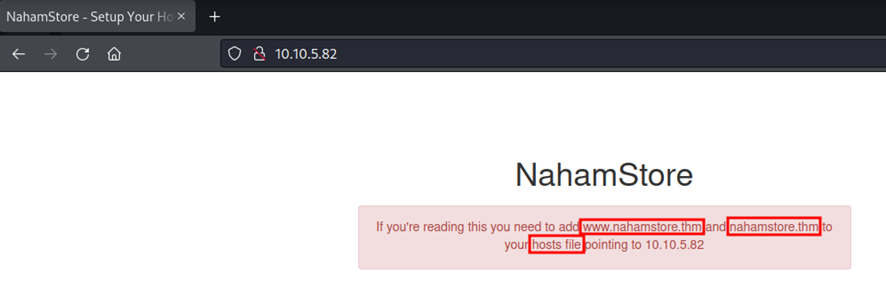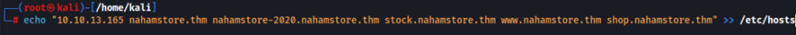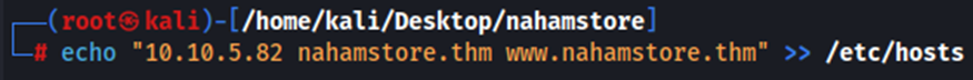 Nos indica que debemos añadir los dominios www.nahamstore.thm y nahamstore.thm a nuestro archivo /etc/hosts.