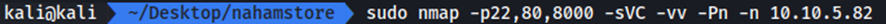 El siguiente paso será realizar un escaneo más en profundidad de los tres servicios disponibles.