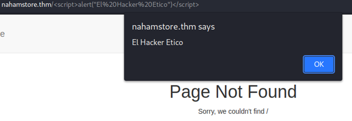 Si añadimos #, nos devuelve a la página principal de nahamstore.thm.