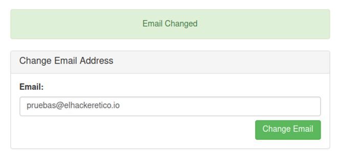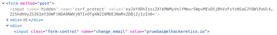 El formulario para cambiar la dirección de correo electrónico contiene un parámetro “csrf_protect”.