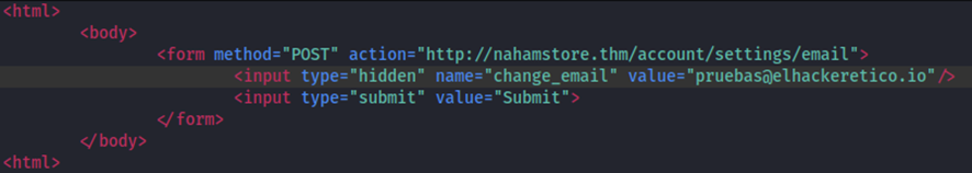 Vamos a eliminar la protección CSRF y a crear una PoC para comprabar si es vulnerable.