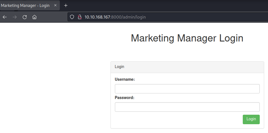 Llegamos al panel de administración de las campañas del subdominio maketing.nahamstore.thm.
