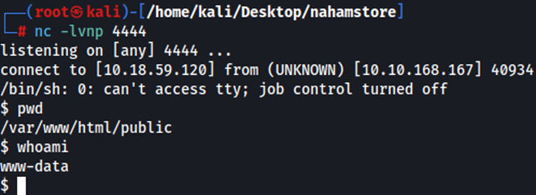 Al mismo tiempo habilitamos un oyente en el puerto 4444.