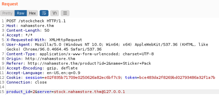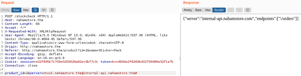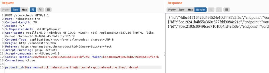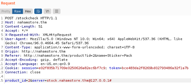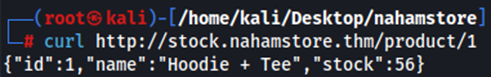 Vamos a probar con rutas internas (server=stock.nahamstore.thm@127.0.0.1)